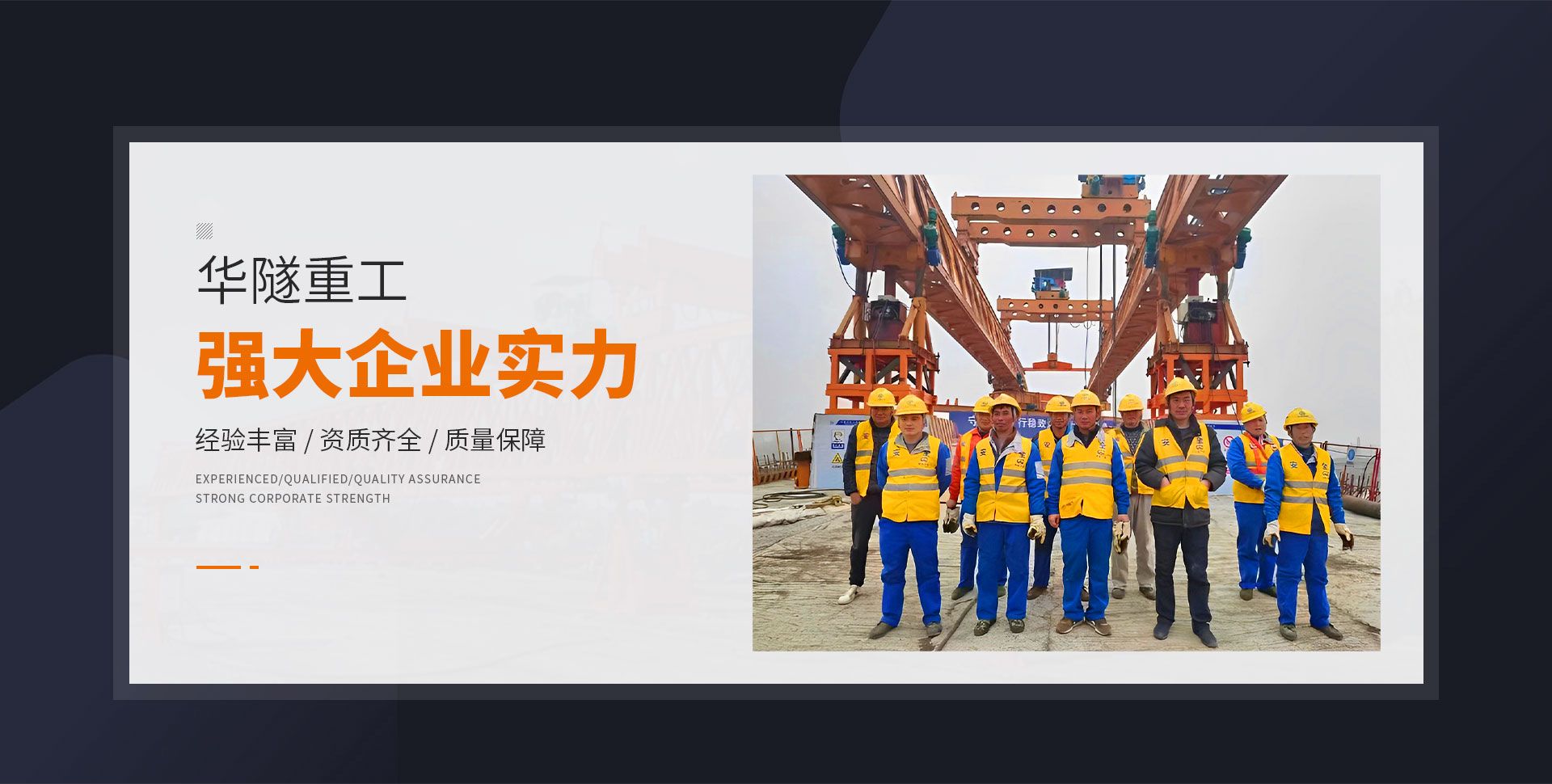 河南華隧重工機(jī)械裝備有限公司主要從事通用門式起重機(jī)、橋式起重機(jī)、電動(dòng)單梁起重機(jī),輪胎式起重機(jī)、架橋機(jī)、提梁機(jī)、遠(yuǎn)梁平車、鋼絲繩電動(dòng)萌蘆、卷?yè)P(yáng)機(jī)、起重配件制造、銷售:起重機(jī)械租賃、安裝和維修,起重設(shè)備園收,機(jī)械設(shè)備維修,鋼結(jié)構(gòu)工程承包,橋梁工程及技術(shù)咨淘服務(wù),銷售五金制品、機(jī)電設(shè)備:建設(shè)工程監(jiān)理,建設(shè)工程設(shè)計(jì),各類工程建設(shè)活動(dòng),建筑勞務(wù)分包,建筑物折除作業(yè),施工作業(yè),工程管理服務(wù),土石方工程施工,裝如發(fā)運(yùn)。  公司已通過(guò)IS0國(guó)際質(zhì)量、環(huán)境、健康與安全三合一標(biāo)準(zhǔn)認(rèn)證,特種設(shè)備制造許可證和特種設(shè)備安裝改造維修許可證。擁有完熟的質(zhì)量管理體系。嚴(yán)格的管理制度,強(qiáng)大的生產(chǎn)能力和先進(jìn)的檢測(cè)手段,在保證產(chǎn)品質(zhì)量的同時(shí),也具備了極強(qiáng)的市場(chǎng)競(jìng)爭(zhēng)力。  公司堅(jiān)持科技創(chuàng)新為理念,產(chǎn)品質(zhì)量為核心,注重信譽(yù),建立了減信可靠、快捷、思速。便利周到的售后服務(wù)網(wǎng)絡(luò)。  我們擁有的技術(shù)專家和技術(shù)服務(wù)隊(duì)伍為客戶提供充善的售前技術(shù)支持和全天候的售后服務(wù)體系,讓您無(wú)后顧之憂,享受一站式的超值服務(wù)。  “華隧重工,伴您成功“是華隧重工永遠(yuǎn)的宗指,真被的希望與各界朋友攜手并進(jìn)。共創(chuàng)輝準(zhǔn)!
